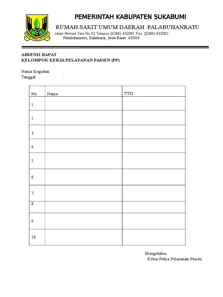Contoh Absensi Rapat : Rapat Dan Temu Alumni Keperawatan Umri Persiapan Reuni Akbar Dan Seminar Keperawatan 24 November 2016 : Kegiatan kerja sama yang dilakukan manusia ataupun sekelompok orang atau masyarakat hingga tercapainya sebuah tujuan yang diinginkan.. contoh presensi daftar hadir dalam rapat. Check spelling or type a new query. contoh absensi siswa daftar hadir siswa. Tata penyelenggaraan pelayanan komunikasi d. Tingginya tingkat kecelakaan dan penyakit kerja, kehilangan hari kerja.